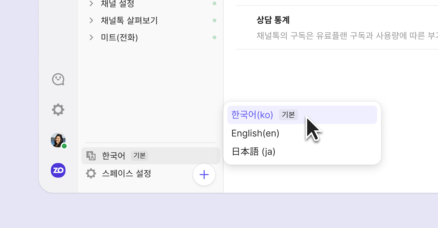다른 언어를 추가한 경우에는 사이드 바 하단에서 언어 모드를 변경할 수 있어요. 사이드 바에 표시되는 카테고리와 아티클의 구성은 언어 선택과 무관하게 항상 동기화돼요. 언어별로 공개 상태는 다르게 설정할 수도 있어요.